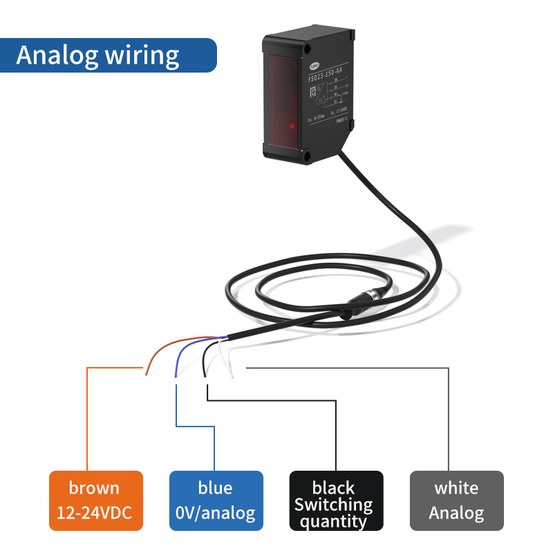 Analoge stroom 4-20 mA Analoge spanning 0-10V Laserindicator: Groen / Nulresetindicator: Rood Uitgangsindicator: Oranje / Modusindicator: Rood
