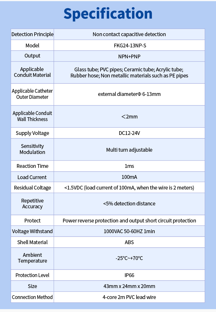 FKG24-13NP-S Laag niveau Detectiecondensator Buisniveau Sensor Capacitief principe, niet gemakkelijk te beïnvloeden door buismateriaal