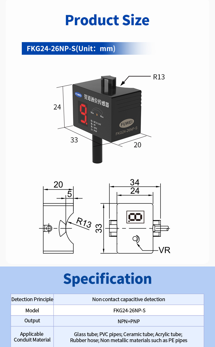 FKG24-26NP-serie buis vloeibare niveau sensor capacitief principe, niet gemakkelijk beïnvloed door pijpmateriaal