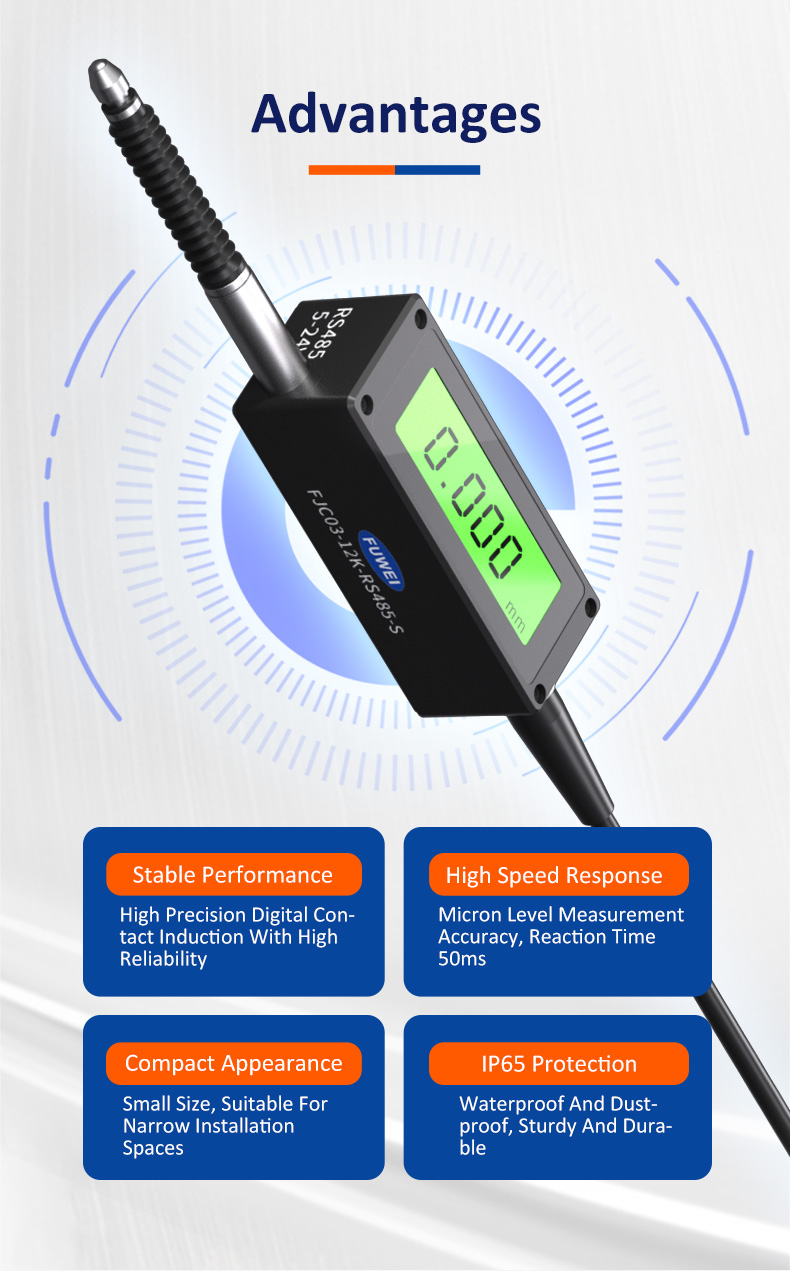 Door gebruik te maken van geavanceerde CMOS-sensoren om met hoge snelheid complexe patronen te lezen die in de weegschaal zijn ingebed, overwint het met succes industriële uitdagingen zoals temperatuurkarakteristieken en volgfouten, waardoor een stabielere en betrouwbaardere meetervaring wordt geboden. Het product integreert uiterst nauwkeurige digitale contactinductie, een ultrasnelle responstijd van 50 ms en meetnauwkeurigheid op micronniveau. Gecombineerd met een compact ontwerp en IP65-beschermingsgraad, behoudt hij stabiele prestaties, zelfs in kleine installatieruimtes en zware werkomstandigheden. Uitgerust met geïmporteerde intelligente chips, maakt het een nauwkeurigere detectie en snellere responstijden mogelijk, waardoor een kosteneffectieve oplossing voor precisiemetingen voor industriële automatisering wordt geboden.
