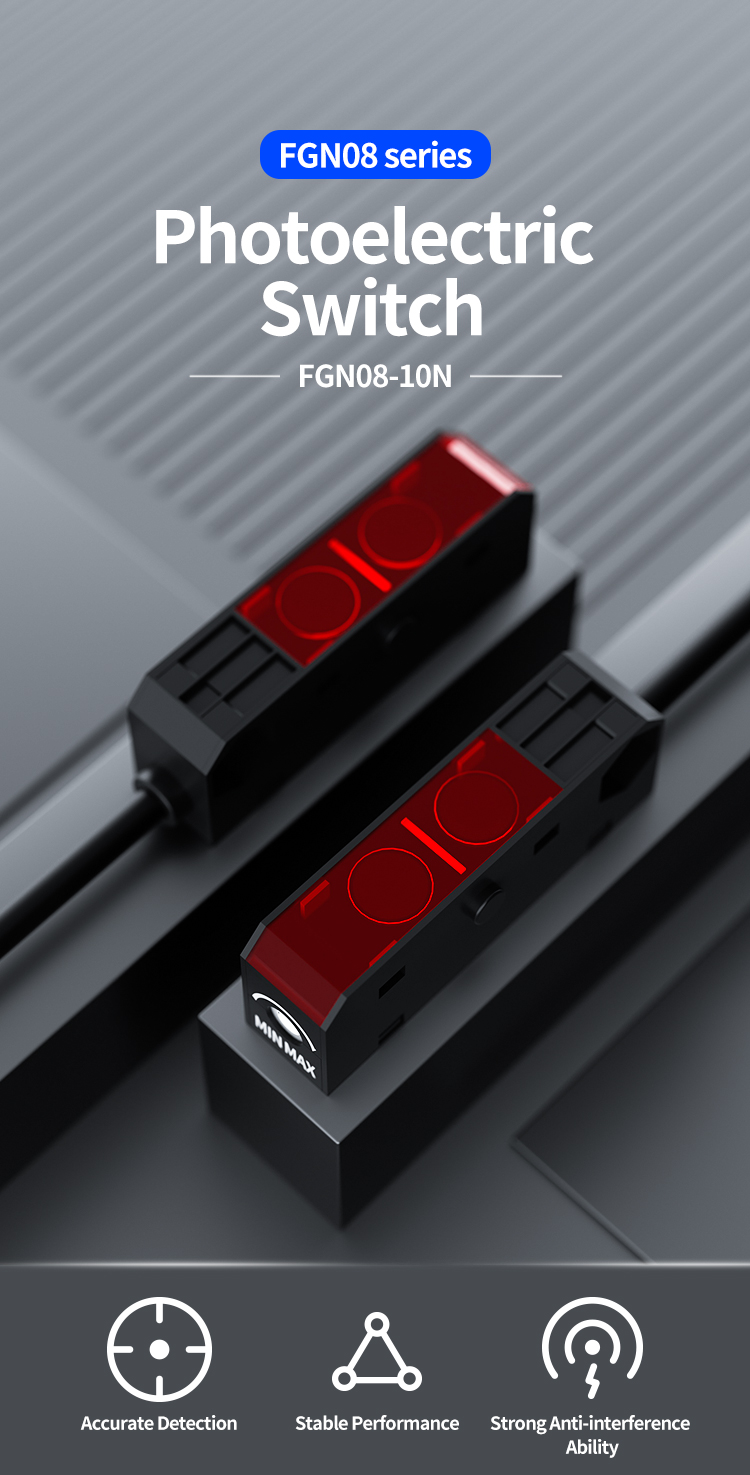 De kleine grootte van de FGN08 -serie maakt het sterk aanpasbaar aan de ruimte. In workshops van elektronische apparatuur, waar ruimte vaak extreem compact is en de interne structuur van apparatuur complex is, kan de FGN08 -serie foto -elektrische schakelaars gemakkelijk hun eigen "plaats" vinden en flexibel worden geïnstalleerd in smalle gaten of hoeken om de komst van gedrukte circuitplaten nauwkeurig te bevestigen. Of het nu gaat om een snel bewegend bord op een productielijn of een delicate assemblage in een machine, het kan een sleutelrol spelen bij detectie dankzij de compacte grootte, niet te veel ruimte in beslag nemen, maar het geven van efficiënte detectie feedback.