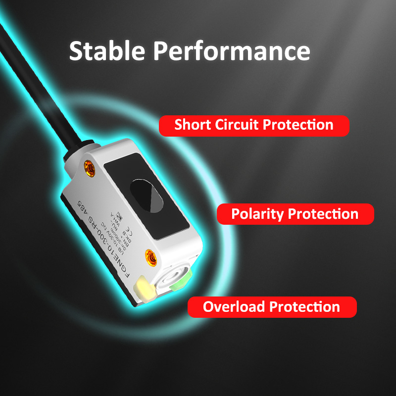 Traditional photoelectric sensors are often forced to be “deployed in different scenes” due to range limitations, resulting in poor equipment compatibility and rising maintenance costs.FGNE10-300-RS485TOF extends the range to a wide range of 0.5-300cm through innovative TOF (Time of Flight) ranging technology, realizing full coverage of long-distance monitoring from macro positioning to long-distance monitoring. Monitoring over lange afstand. In grijpscenario's van robotachtige arm kan de nauwkeurige identificatie van 0,5 cm zorgen voor de nauwkeurigheid van de montage van kleine delen; Terwijl in AGV Robot Obstacle Mededance Scenario's, verbetert de 300 cm ultra-lange detectieafstand de redundantie van de mobiele veiligheid aanzienlijk. Multifunctionele machine, volledig afscheid nemen van de frequente vervanging van sensoren door scèneschakeling.