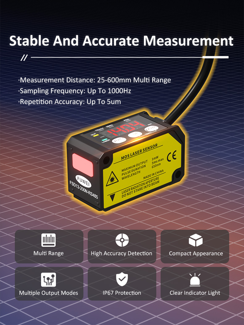 Op het gebied van industriële automatisering is meten met een hoge betrouwbaarheid, meten met hoge betrouwbaarheid altijd de kerngarantie geweest voor productie-efficiëntie en productkwaliteit. Fuwei Electronics 'nieuw gelanceerdCMOS laser verplaatsingssensor FSD13 -serie, met zijn doorbraakte technische ontwerp en strikte normen voor industriële kwaliteit, biedt "millimeterniveau precisie en stabiliteit op micrometerniveau" intelligente detectieoplossingen voor industrieën zoals mechanische productie, elektronische verpakkingen en voedselverpakkingen, het opnieuw definiëren van meetnormen in complexe bedrijfsomstandigheden.