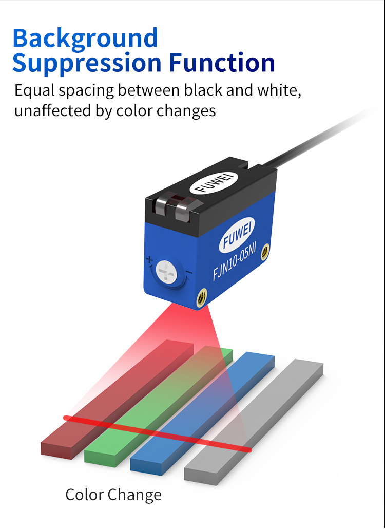 Doorbraakontwerp van achtergrondonderdrukkingsfunctionaliteit elimineert kleur als een detectie -obstakel. Traditionele lasersensoren ervaren vaak afwijkingen van detectieafstand wanneer ze worden geconfronteerd met zwart-wit of licht-donkere gekleurde objecten vanwege verschillen in reflectiviteit. Bij het detecteren van zwarte plastic onderdelen is de responsafstand bijvoorbeeld meer dan 30% korter dan die van witte werkstukken, wat leidt tot frequente sluitingslijnafsluitingen voor kalibratie. De FJN10-05NI, uitgerust met een dual-channel achtergrondonderdrukkingsalgoritme, past het laseremissievermogen dynamisch aan en de ontvangstgevoeligheid om nauwkeurige zwart-wit gelijkwaardige detectie te bereiken. Binnen het detectiebereik van 30-500 mm, ongeacht of het werkstuk een glanzend metalen oppervlak, mat plastic of een gekleurde coating is, zolang de werkelijke afstand consistent is, kan de sensor een schakelsignaal stabiel uitvoeren. Nadat een bepaalde fabrikant van de auto -onderdelen deze sensor had aangenomen, daalden het verkeerde inschakelaarspercentage voor het detecteren van gekleurde kabelboomterminals van 12% naar 0,3%, waarbij de dagelijkse productiecapaciteit toeneemt met bijna 2.000 eenheden.