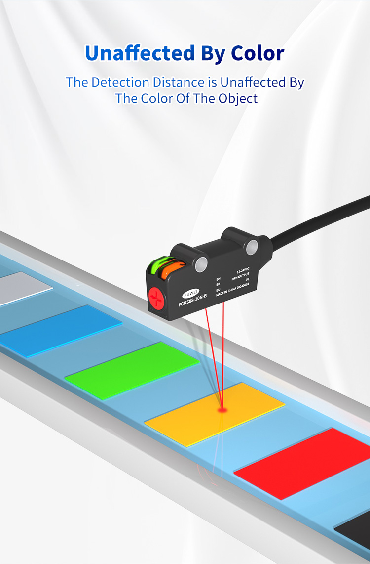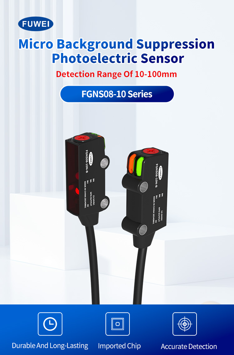 Bij moderne inspectie van industriële automatisering zijn kleurvariaties al lang een kritieke factor die de detectiestabiliteit beïnvloedt. FGNS08-10-serie van Fuwei Electronics Miniature Achtergrond Onderdrukking Foto-elektrische sensoren lost deze industriële uitdaging volledig op met hun uitzonderlijke achtergrondonderdrukkingsmogelijkheden en precieze detectieprestaties. Hoe bereikt deze kleurplaatdetectiesensor, specifiek ontworpen voor zeer nauwkeurige detectie, stabiele detectie die niet wordt beïnvloed door kleur? Dit artikel biedt een uitgebreide analyse van de kerntechnologische voordelen van dit innovatieve product.