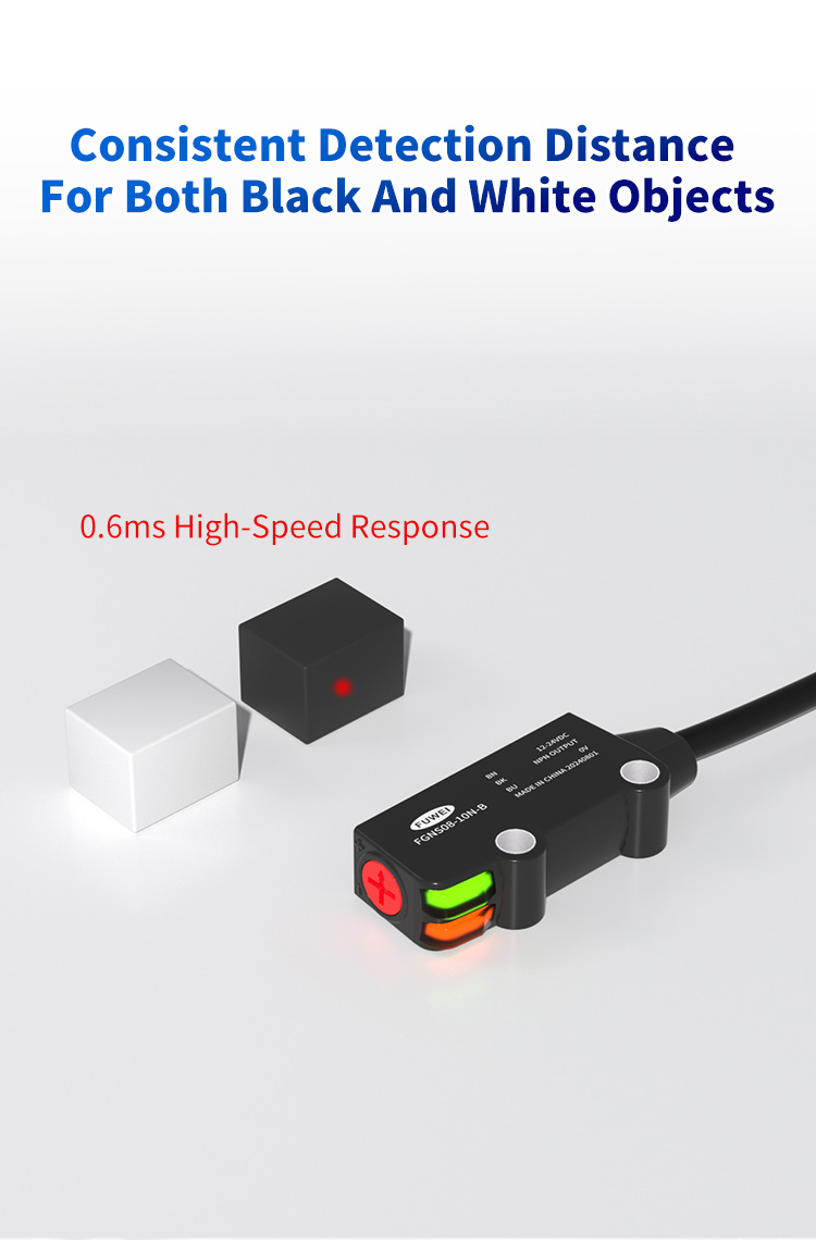 Met zijn doorbraakkleur-onafhankelijke detectietechnologie en uitstekende prestaties, stelt de FGNS08-10-serie miniatuur achtergrondonderdrukking foto-elektrische sensor van Fuwei Electronics een nieuwe technische benchmark in in de inspectie van industriële automatisering. Of het nu gaat om inspectie van kleurplaat, chipherkenning of verpakking/cosmetica -detectie, deze professionele kleurplaatsensor levert betrouwbare, precieze detectieoplossingen. Het kiezen van de FGNS08-10-serie betekent het selecteren van een slimmer, stabielere en efficiëntere industriële detectiebenadering.
